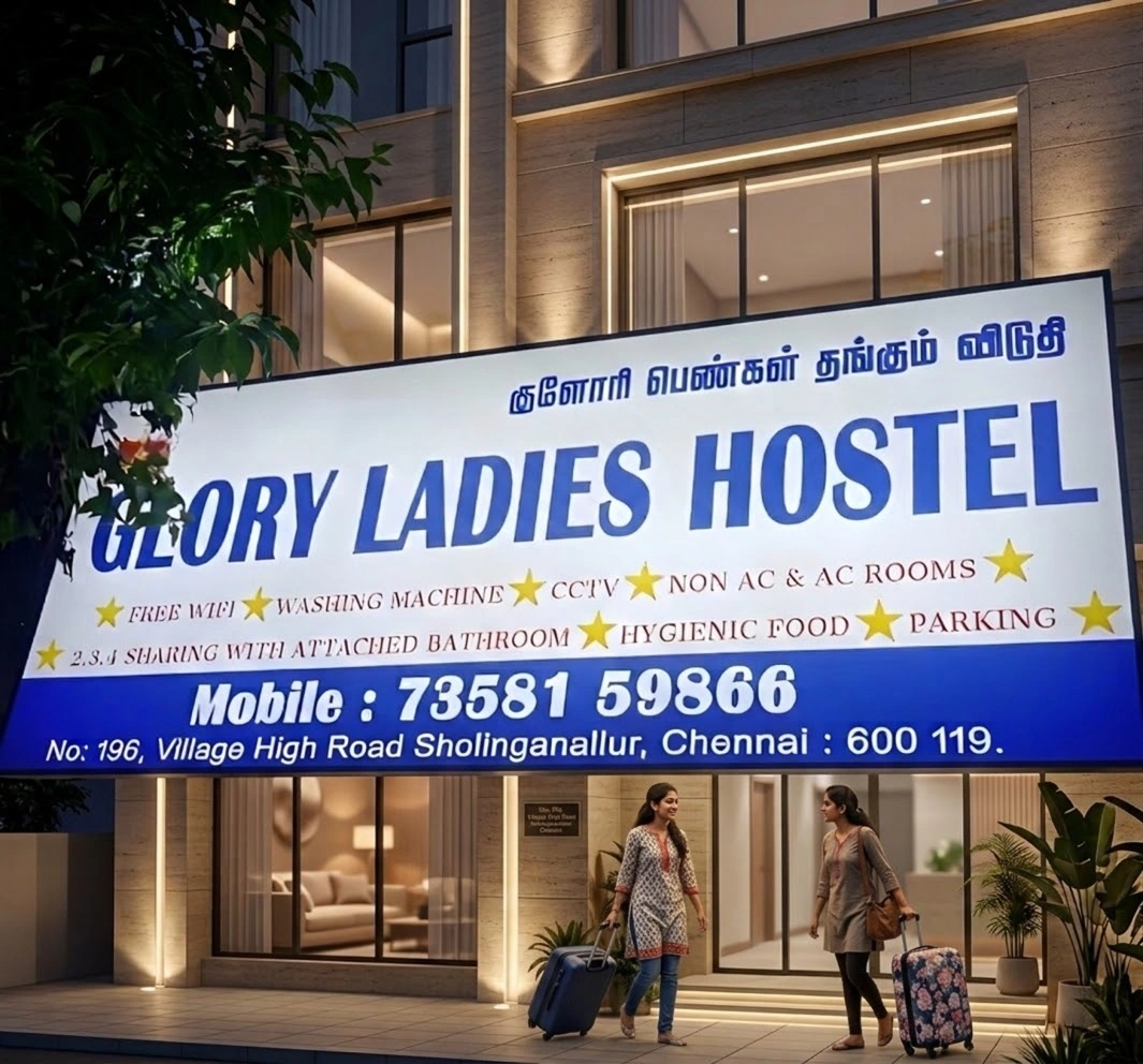 At our glory ladies hostel, we focus on creating a safe, comfortable and welcoming environment where women can stay with complete peace of mind. We specialise in providing a secure, supportive and convenient environment for students and working professionals. With well-maintained rooms, essential facilities, and a friendly atmosphere, we make sure every resident enjoys a pleasant and stress-free stay.